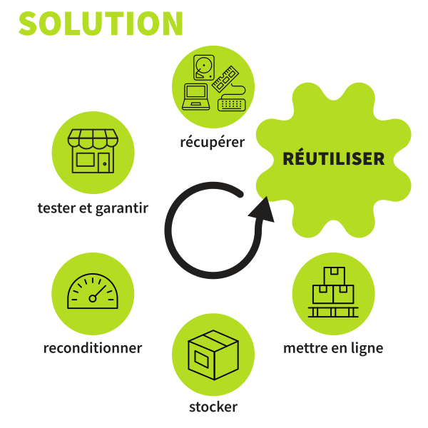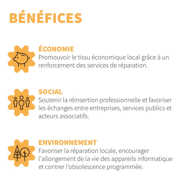 Ces pièces détachées proviendront de matériel usagé collecté dans le canton et rescapé de la fonderie. Les pièces seront triées, testées, numérotées et mises en vente avec une garantie. Outre la réduction des impacts éco-logiques, ce projet permettra donc de renforcer les structures locales de déconstruction et revalorisation du matériel informatique et de créer des emplois souvent destinés à des personnes en réinsertion